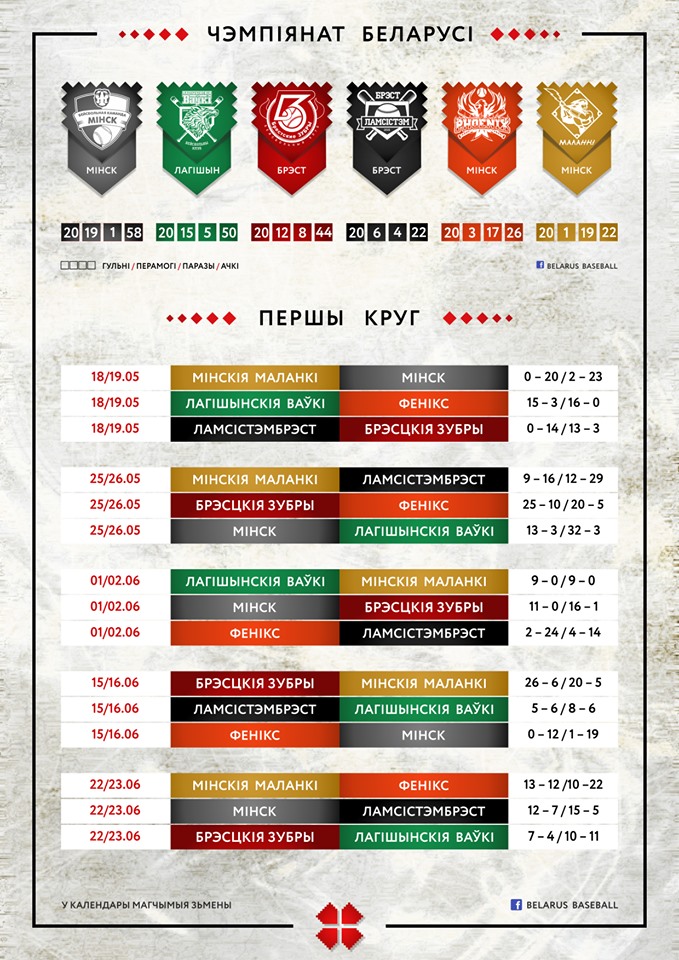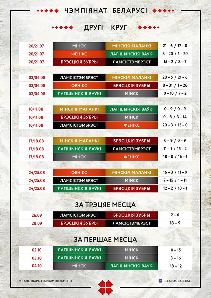 Календарь Чемпионата РБ по бейсболу